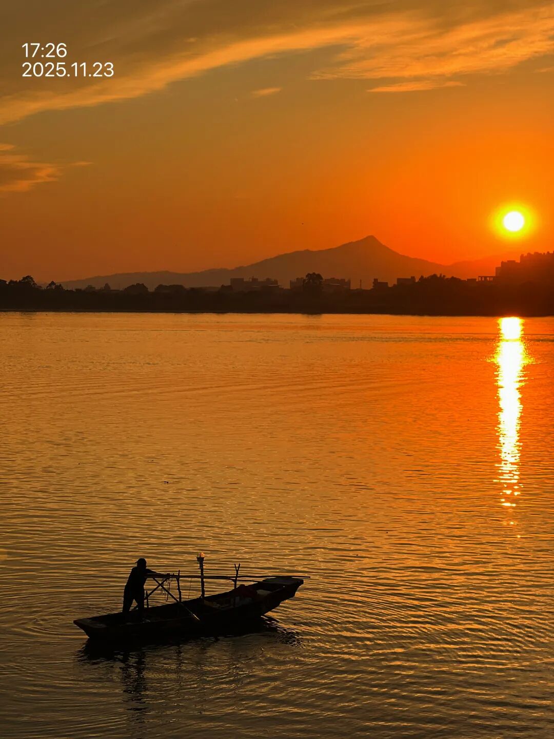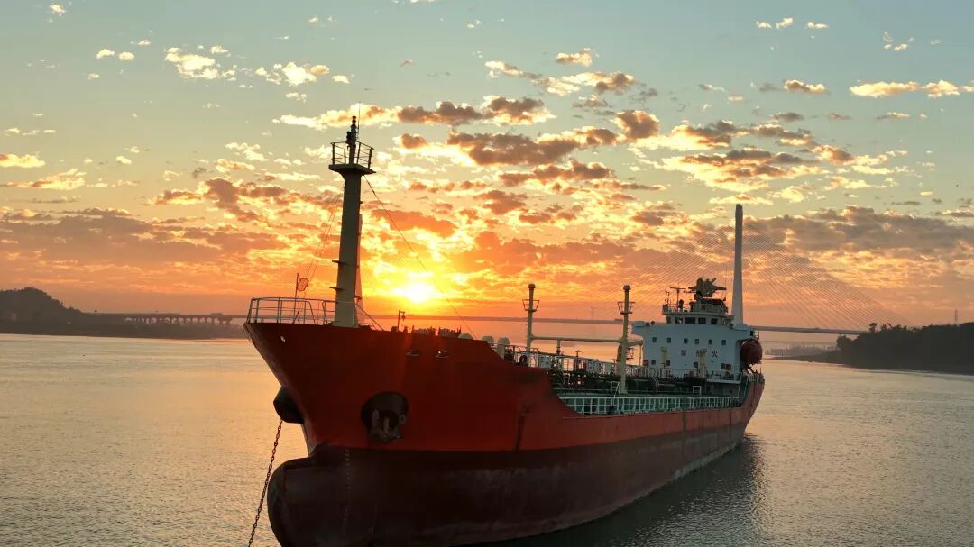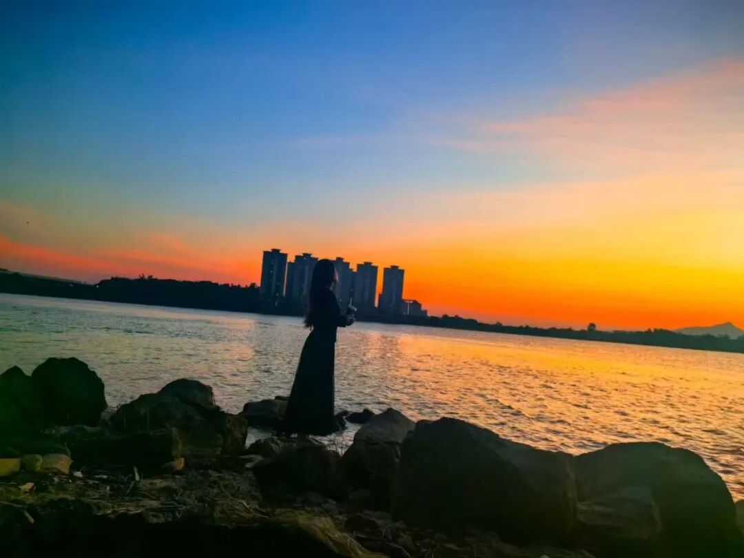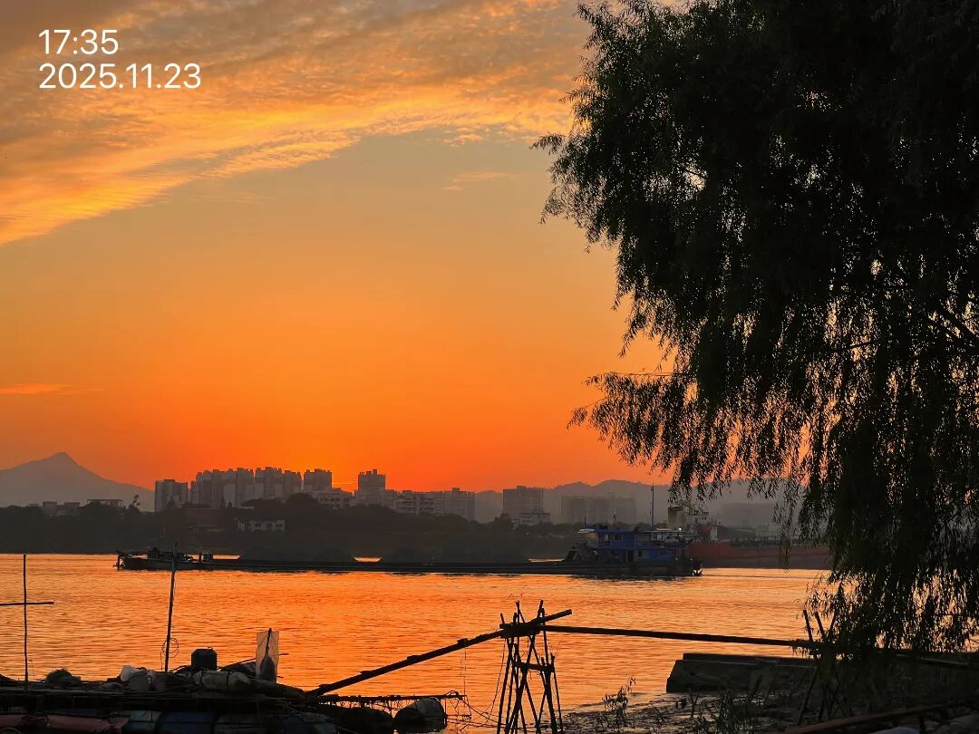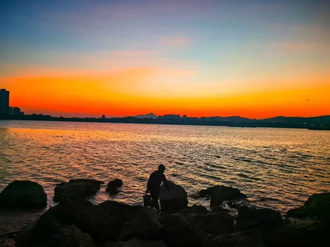 落日彩霞映照着江面