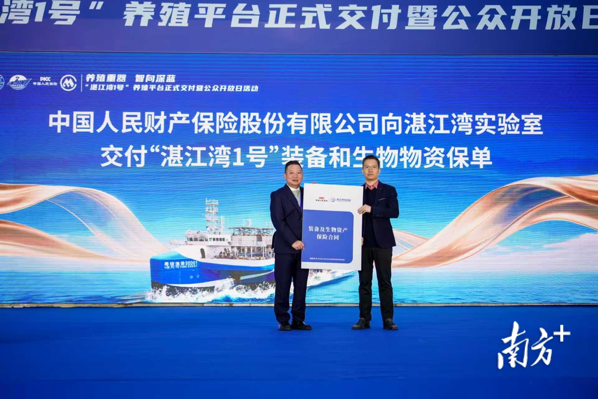 挺进深海同样离不开保险的保驾护航。中国人保财险湛江市分公司总经理助理赵正琨表示,中国人保财险湛江市分公司为“湛江湾1号”提供了一系列的风险保障,比如针对养殖平台的2.4亿元装备财产保险;针对后期投苗养殖,还会提供接近1亿元保额的养殖综合保险。