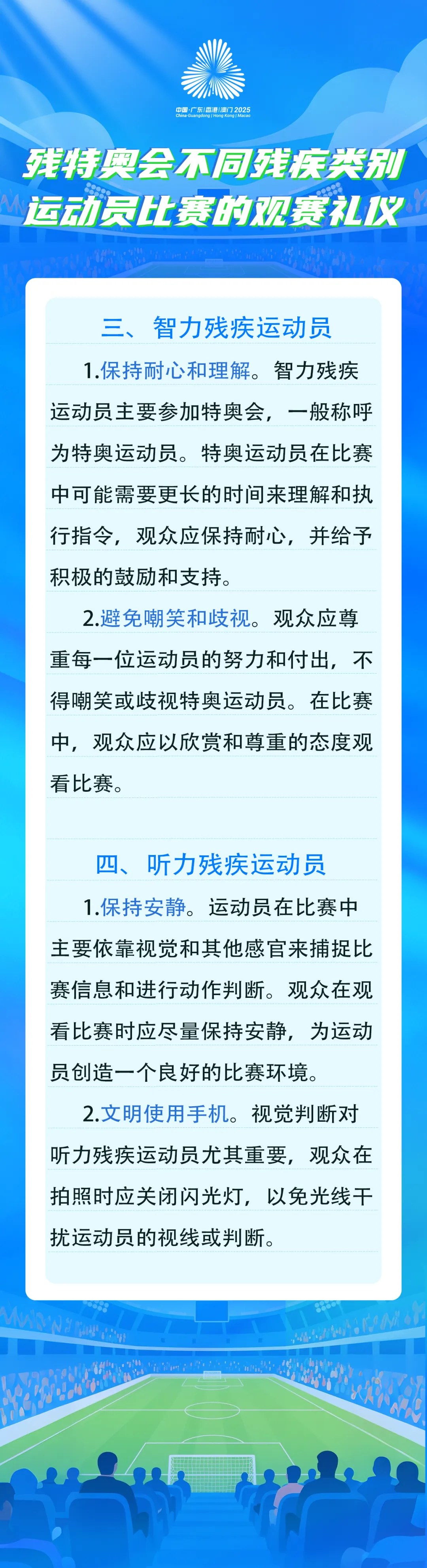 2025残特奥会开幕在即 哪些时刻可以鼓掌喝彩吗? 一文带你了解观赛礼仪 让我们共同营造 文明、和谐、积极向上的 观赛氛围