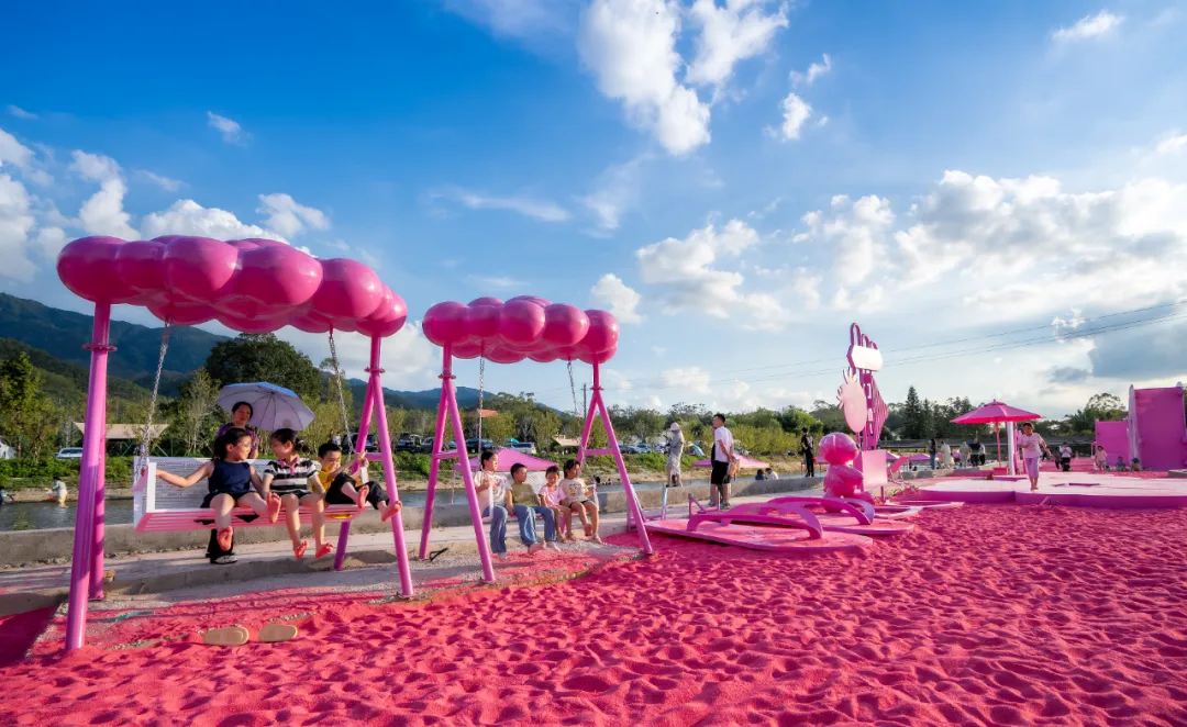 皂幕·粉砂溪畔位于“佛山第一峰”皂幕山脚下,以粉色为主题色,依托杨梅河西坑支流1公里水岸线两岸,设有溪流营地、休闲慢漂、摸鱼抓虾等玩法,是环皂幕山生态旅游观光带安全性高、跨年龄层的家庭娱乐式溯溪露营基地之一。