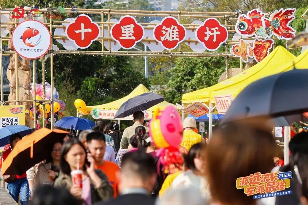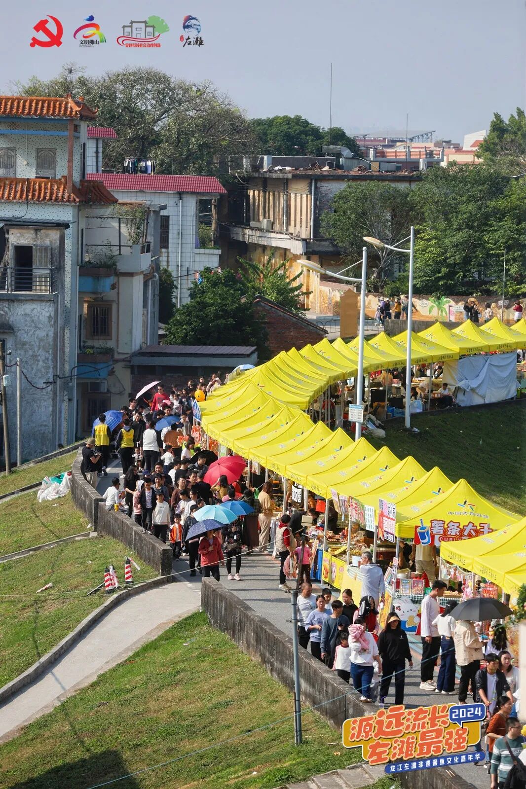 摸鱼躺平艺展区 图源:印象左滩。 地点:甘竹滩电站博物馆园区 躺平的100种方式“艺术装置”“摸鱼躺平”打卡点,poss任你摆,文艺大片秒出圈。 水塔艺术装置有龙江“头啖汤”特别摊位,暖心又暖胃,比coffee还治愈。 鱼灯、醒狮文创展示区,传统手艺新玩法,看了就想带回家。 N个车尾箱集市,潮流文创、手作好物、特色小食,逛到挪不动腿。 酱鱼体验展销区 往年活动现场。图源:龙江发布 地点:天后宫至大澳斜坡 玩乐体验、本土风味 特产手信,一站式搞掂不费劲 文创产品 左滩特色冰箱贴、钥匙扣、徽章......自带颜值,自留送礼超有面。 互动体验 手脸彩绘、漆扇DIY、拳击体验......大小朋友都能玩得尽兴。