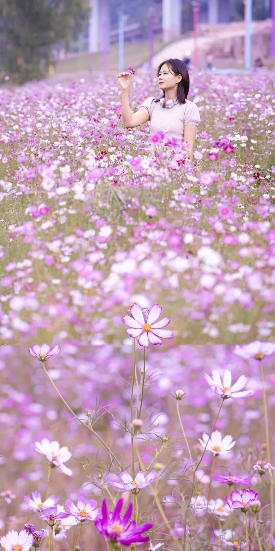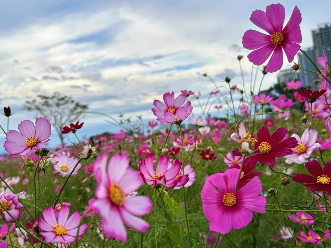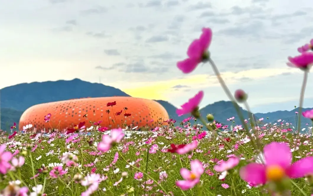 场馆旁的一大片格桑花正值盛花期,