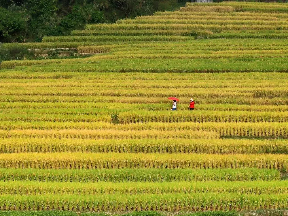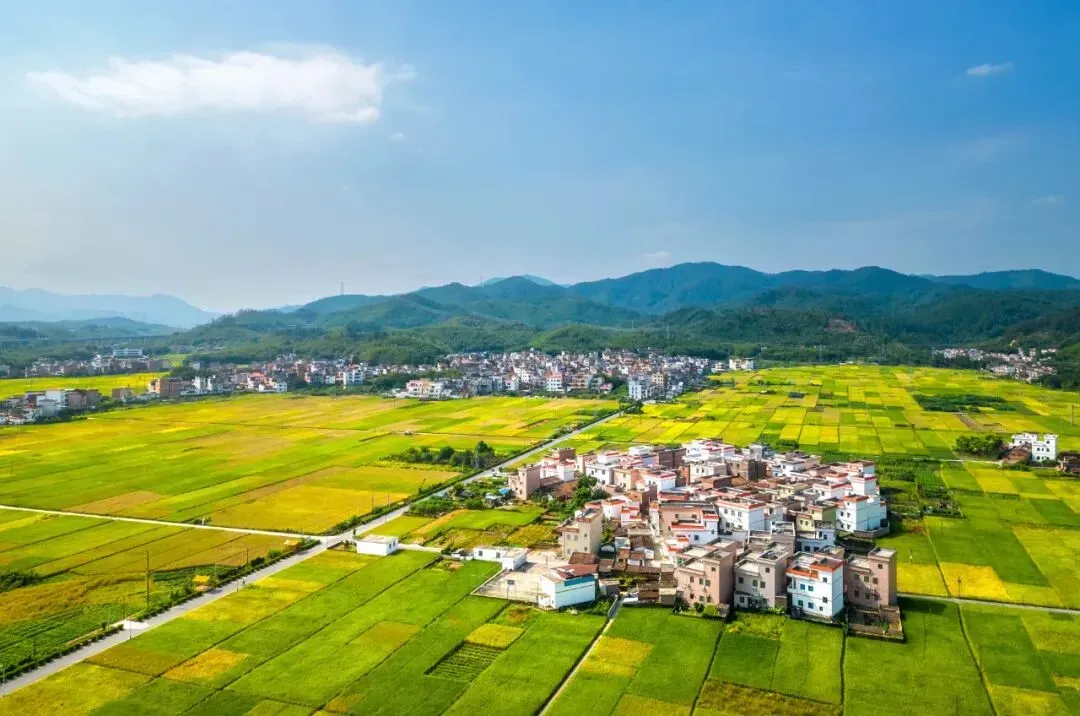 稻田交织成一幅斑斓的织锦,
