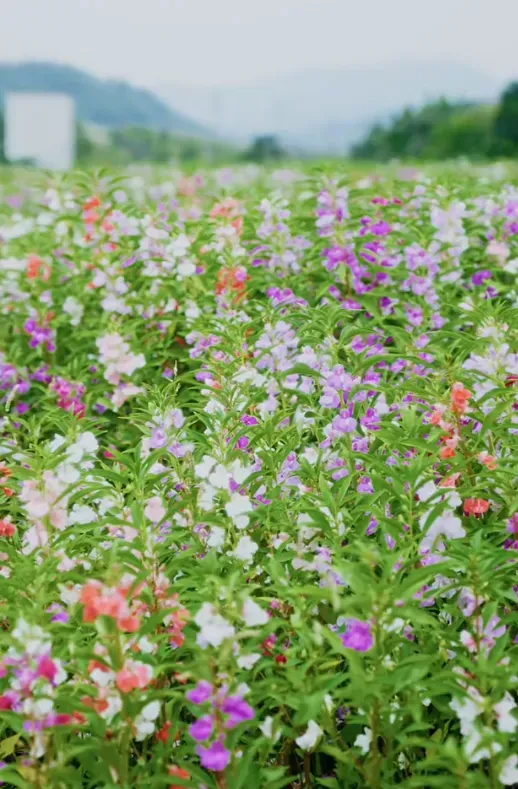 粉的、白的、紫的……在阳光下摇曳生姿,