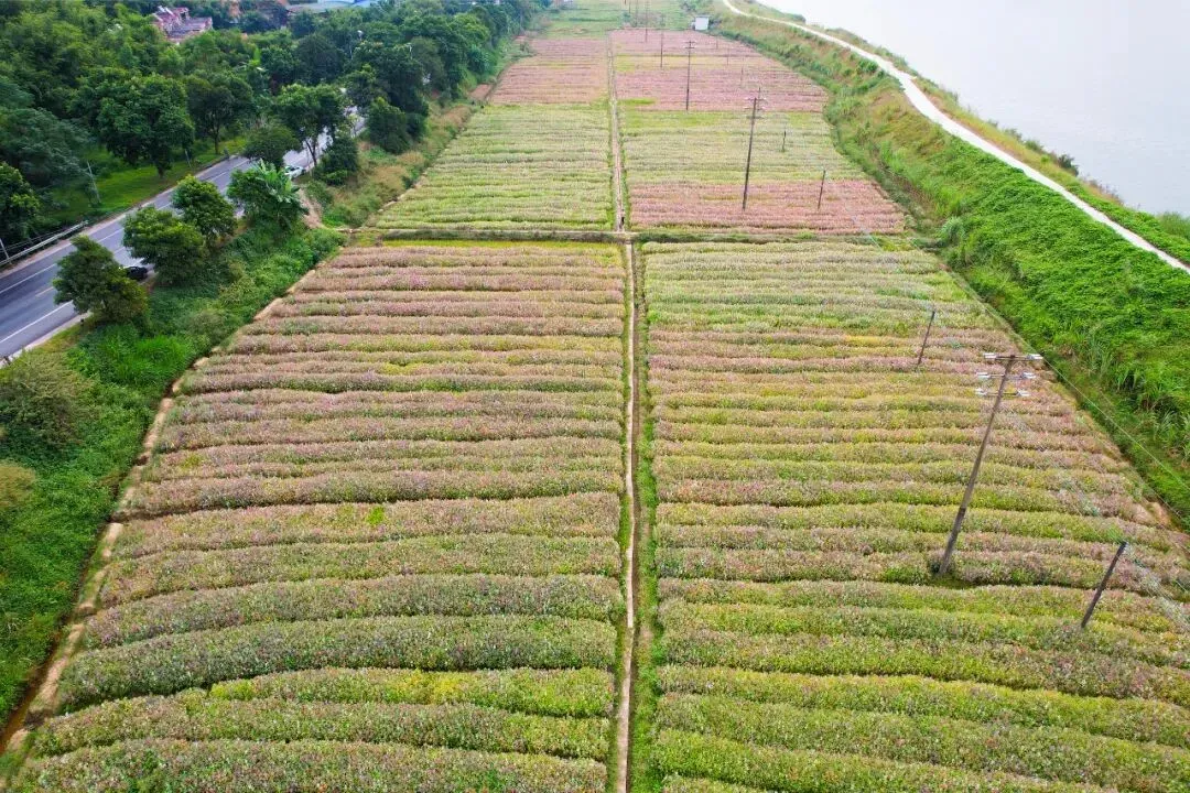 花田在暖阳下泛着层层叠叠的光泽,