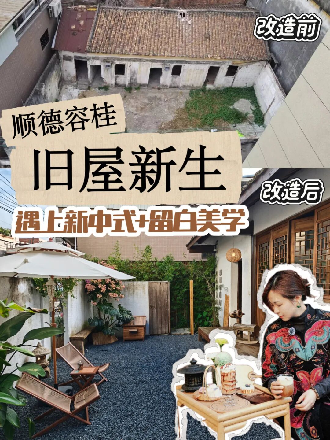 在容桂容里社区的巷弄深处,一处闲置的破旧小屋经过主理人张小姐一番别出心裁的改造后,蜕变成为一处让人感到惬意的新中式咖啡小院。经过时光洗礼的老房子获得了新生。