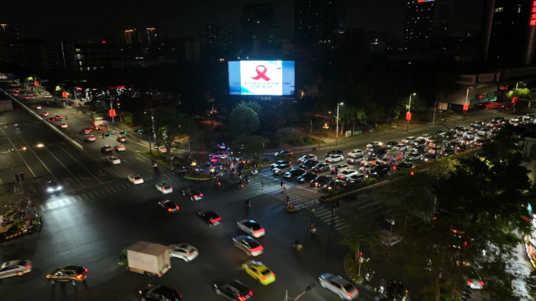 亮灯现场不仅展示了“社会共治,守正创新,终结艾滋”等宣传主题,更通过动态灯光秀循环播放艾滋病防治知识宣传短视频,生动直观的科普形式吸引众多市民驻足观看。