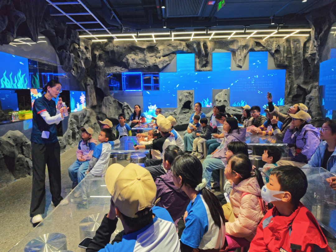 活动当天,亲子家庭一早集结出发,开启探秘之旅。“星际梦想家”与科学表演秀率先点燃现场气氛,奇妙现象引来阵阵惊叹;在海洋科普环节,亲子合作制作漂浮瓶,学习海洋知识;随后的深海VR潜艇与模拟台风体验,则让大家在身临其境中掌握防灾避险常识。无人机试飞环节中,孩子们在导师指导下亲手操控,感受航空科技的魅力;午后开展的AI和VR互动打卡、科技鱼实操等项目,进一步拓宽了孩子们对前沿科技的认知,在趣味中激活创新思维。