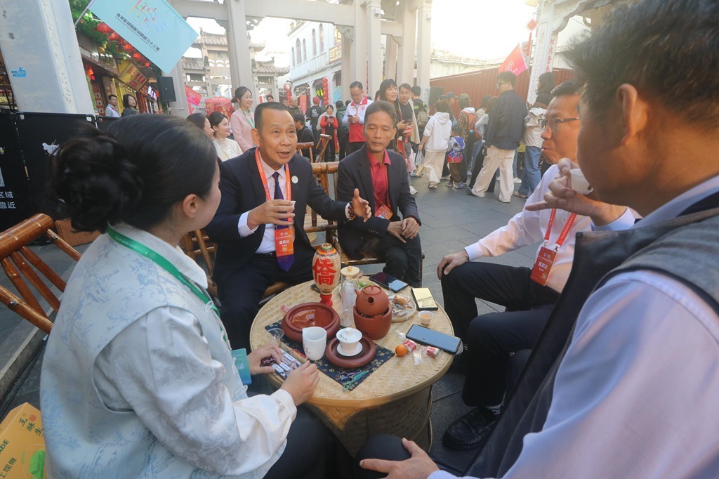 古城沉浸式体验活动更让这份“双向奔赴”的亲情在细节中流淌。“入城”仪式上,舞狮队、鲤鱼舞与二十四节令鼓队沿街展演,仿若“闹热”;“叩茶”环节里,嘉宾们品工夫茶,茶杯传递着“推门即亲”的温情;“食饭”时分,地道的潮州美食更是牵动着味蕾与乡愁,嘉宾们穿街走巷品尝家乡味,欢声笑语中满是团圆的温馨;“买物”集市内,府楼猴盲盒、潮绣、手拉壶等特色产品琳琅满目,嘉宾们细细挑选,只想把家乡的味道与文化带回家,让乡愁有处安放……