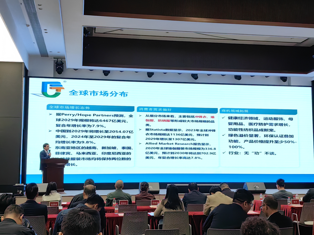 功能性纺织品作为产业升级的核心抓手,其发展离不开权威标准的牵引与源头材料的创新。对接会上,广东省科学院测试分析研究所主任黄明华系统解读了“功纺”认证评价体系,强调以科学、统一的检测标准为产品功能“验明正身”,为市场传递价值与信心。