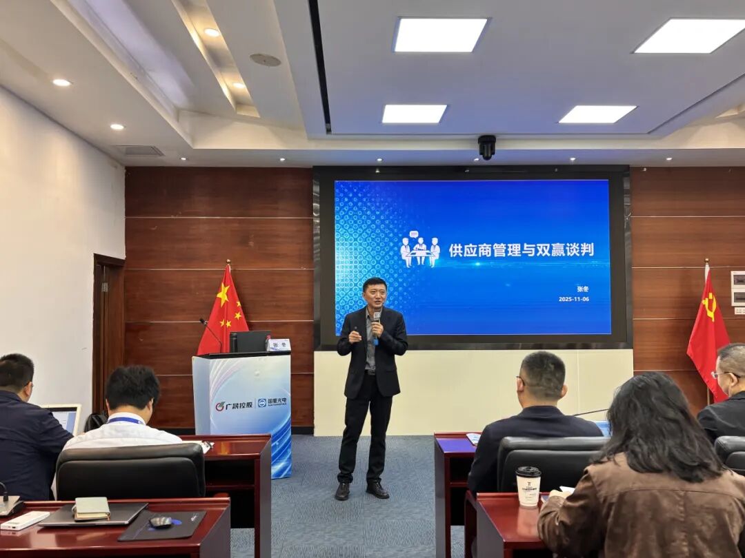 此次培训积极联动广晟控股集团系统内兄弟单位,特邀佛山照明招投标中心负责人王强进行“供应链管理和人才培养”专题沙龙分享,促进双方经验互鉴与思想碰撞。本次培训还邀请了佛山照明采购人员共同参训交流,不仅深化彼此业务协同,增强广晟大家庭的凝聚力,更探索出一条“星链”人才共育、“协同”生态共建的新模式。