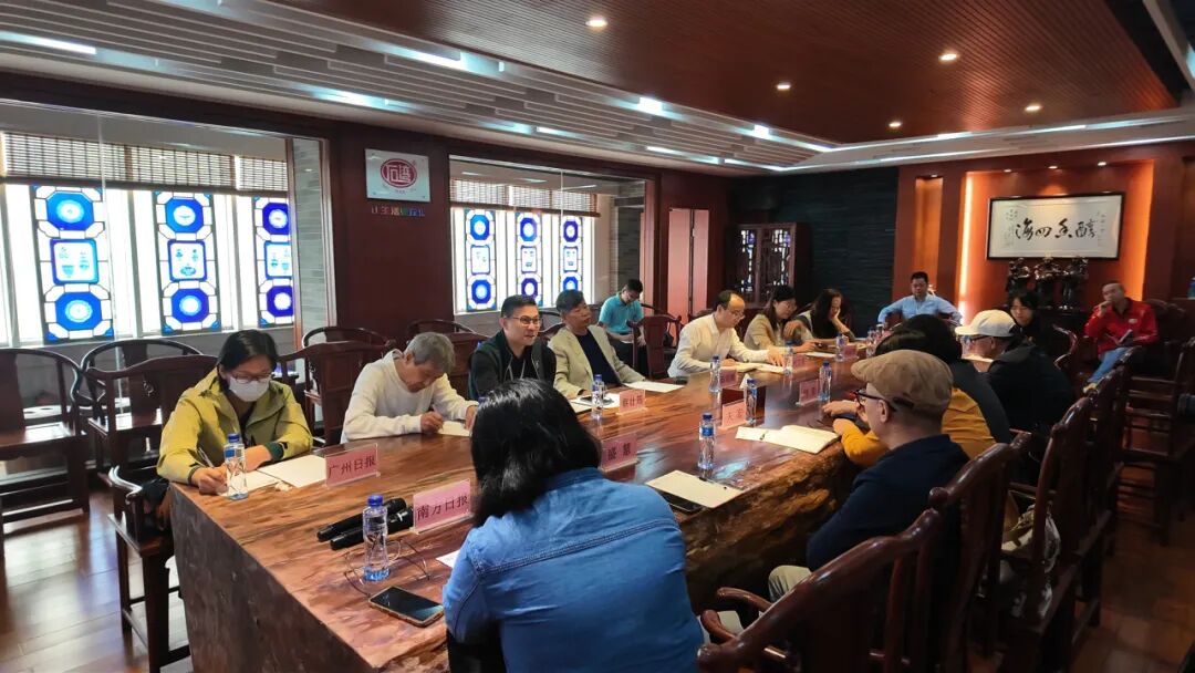 随后,与会嘉宾移步至岭南酒文化博物馆5楼座谈室,围绕"游朱紫·大红大紫——非遗融入现代生活的创新路径探讨"主题展开深度座谈。