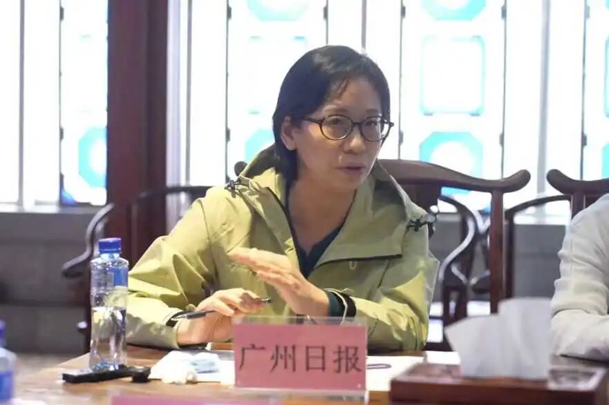 广州日报记者代表分享了对石湾酒文化的感受,提及多年前在酒厂饭堂品尝的米酒鸡令其印象深刻,认为酒文化在美食领域潜力可挖。她以在应县木塔前的文化震撼为引,思考石湾场域内何种体验能引发类似共鸣,并认同“故乡水”意象所承载的乡土情结。她表示,若朱紫街与石湾玉冰烧能触发人们真正的情感触动,便是非遗传承成功的重要标志。