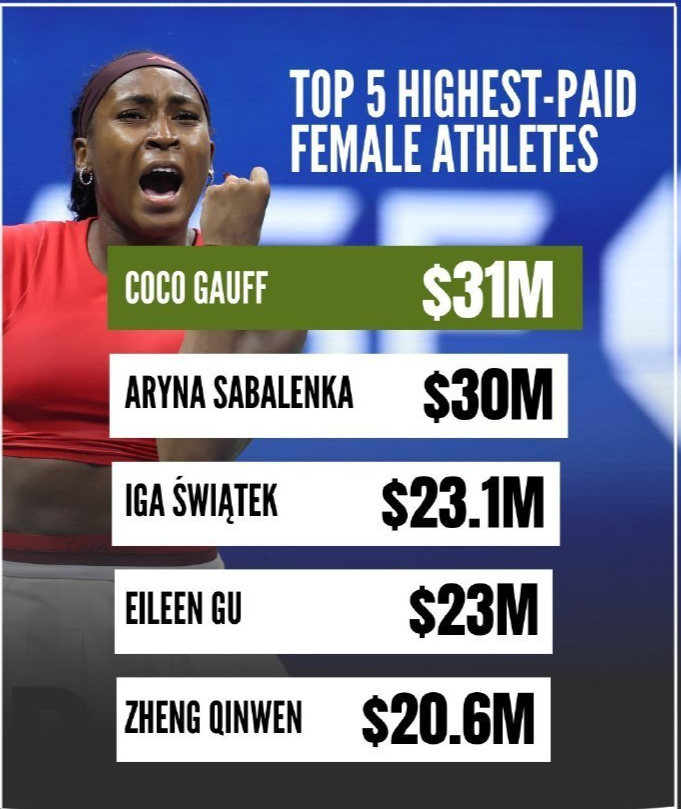 2025年女运动员收入排行:谷爱凌2300万美元列第4,郑钦文列第5
