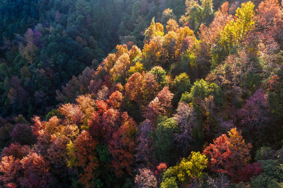 在初冬,乳源的天井山国家森林公园的原始森林极其富有色彩层次感,不仅仅是枫叶,树木也随气温的变化纷纷变红或黄。森林里还有着不能错过的落羽杉林,“焦黄”的美拉德色让人沉醉。