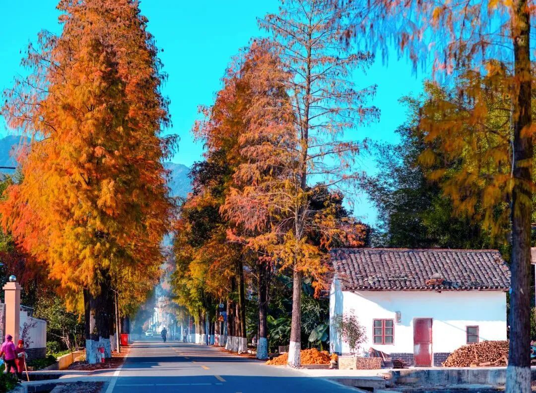 落羽杉是韶关的“变色魔法师”,始兴县X344线全长22公里的道路两旁,一棵棵落羽杉在秋冬季节逐渐由绿转为红褐色。这条“最美乡村公路”是绝佳的打卡点,躯干笔直的落羽杉与道路共同构成一条美丽的“时空隧道”。