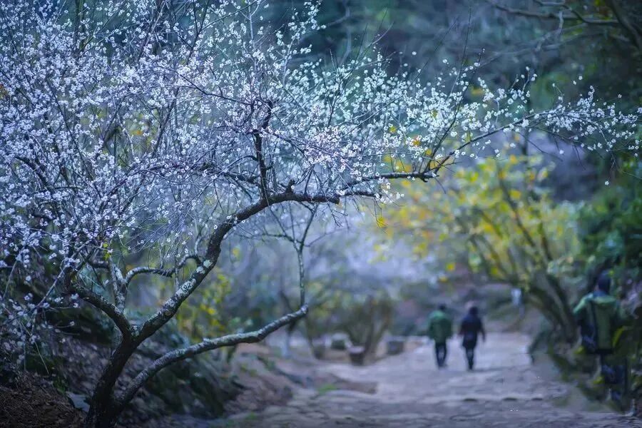 这条历史悠久的古驿道,被誉为“中国四大赏梅地”之一。入冬后,古道两旁的梅花次第开放,白梅、红梅、粉梅、腊梅、绿萼梅、珍珠梅等十多个品种,足以让你大饱眼福。尤其在12月中下旬至次年2月,梅花进入最佳观赏期,枝头繁花与脚下古道相映成趣,构成一幅独特的冬日画卷。