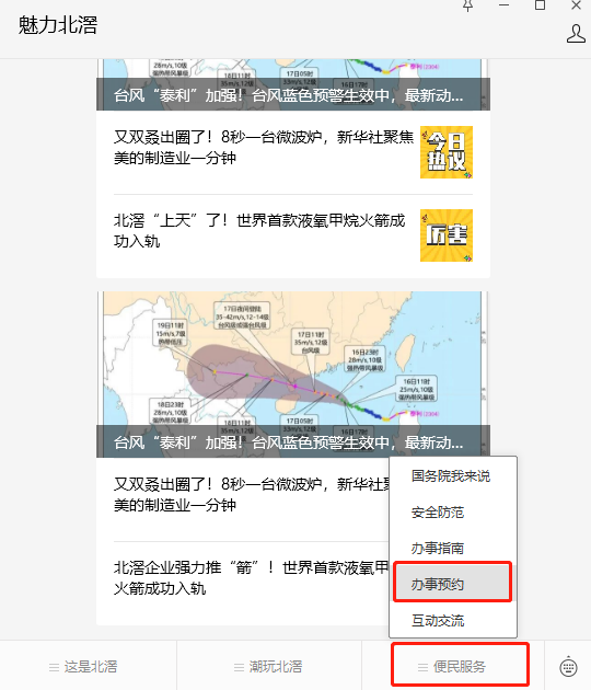 关注【魅力北滘】公众号→点击菜单栏【便民服务】→选择【办事预约】,进入链接点击相关信息即可。