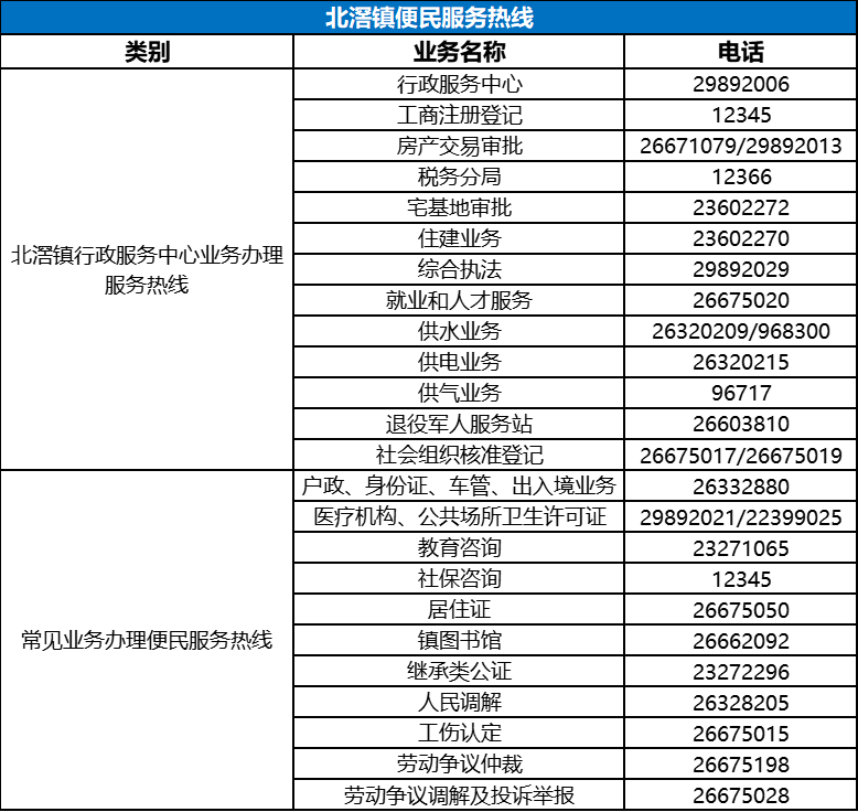 北滘镇便民服务热线