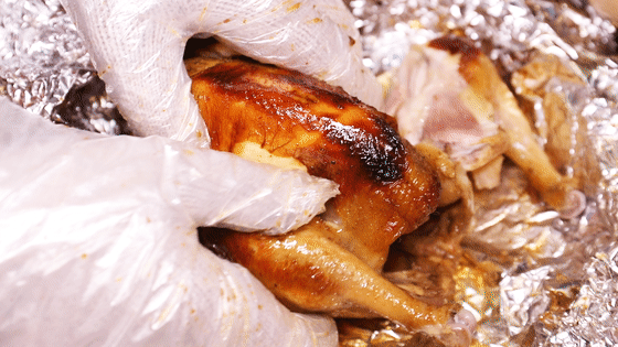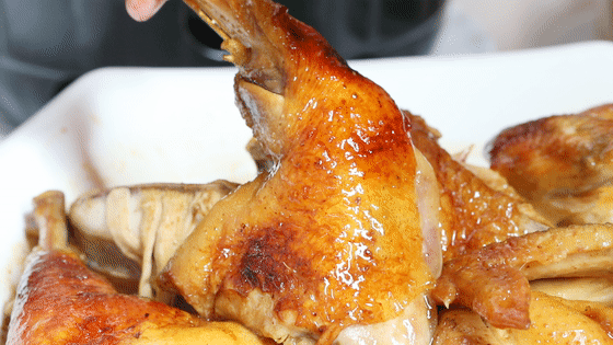 刚刚出炉的窑鸡色泽金黄、皮脆焦香、鲜嫩多汁,一口咬下去能明显感觉到汁水从鸡肉中溢出,就连鸡胸都不会柴。