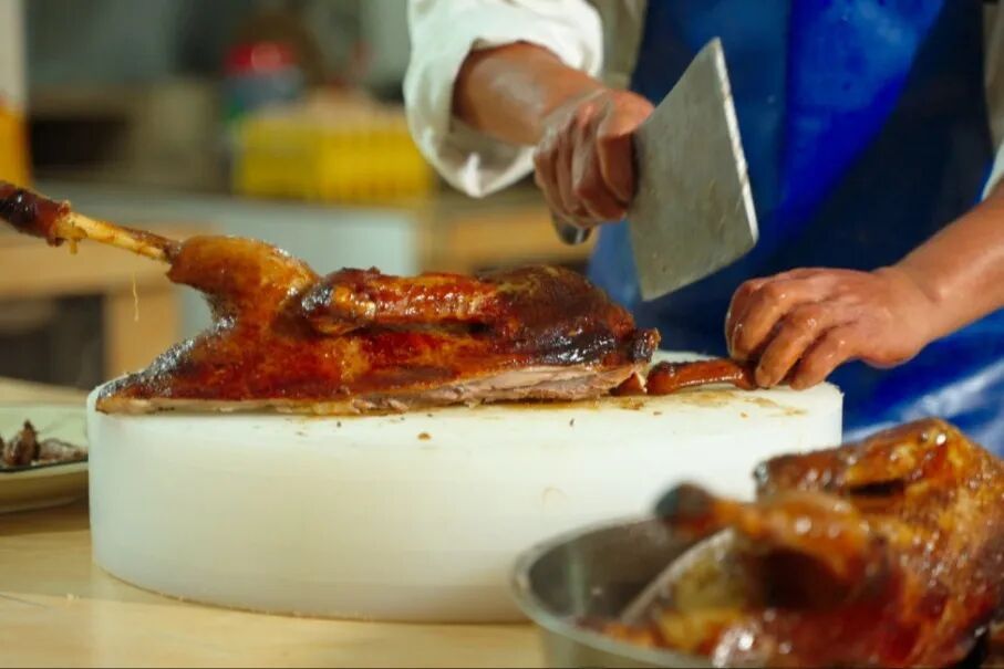 扒鹅的制作有所讲究。首先是挑鹅,选用生长6-7个月,体重10斤左右的走地鹅,再用柴火和大锅灶煎煮焖制将近一个钟。“扒”这个字,精准地描述了其烹饪精髓——不靠猛火急攻,而是让鹅肉在微沸的酱汁中,慢慢地、充分地浸润、渗透。