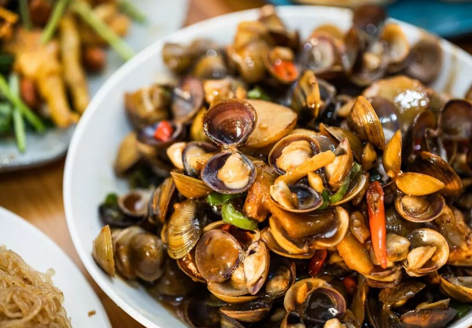 每一个蚬肉都饱吸蒜蓉、豆豉和辣椒的酱汁,用嘴一嗦,鲜辣咸香瞬间在口中爆开,这就是宵夜的快乐!