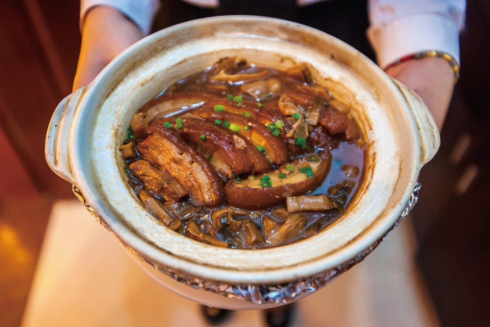 它吸饱了五花肉的油脂,变得油润甘香;而五花肉又因为梅菜变得肥而不腻,入口即化。