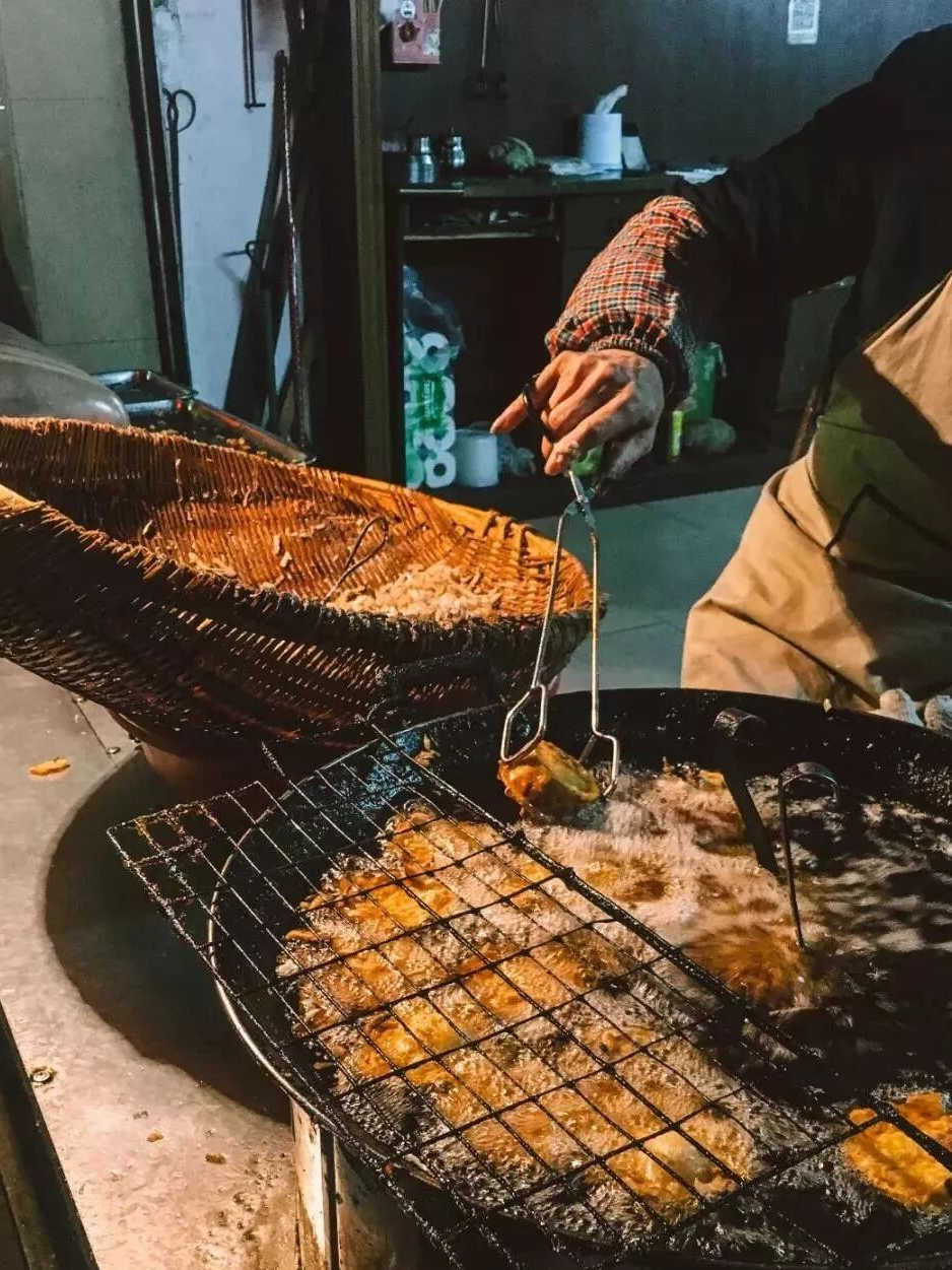 一口咬下去,汁水四溢,金黄焦香的外皮搭配鲜嫩多汁的鸡肉越嚼越香,在汤汁上蘸一下,更是绝配!
