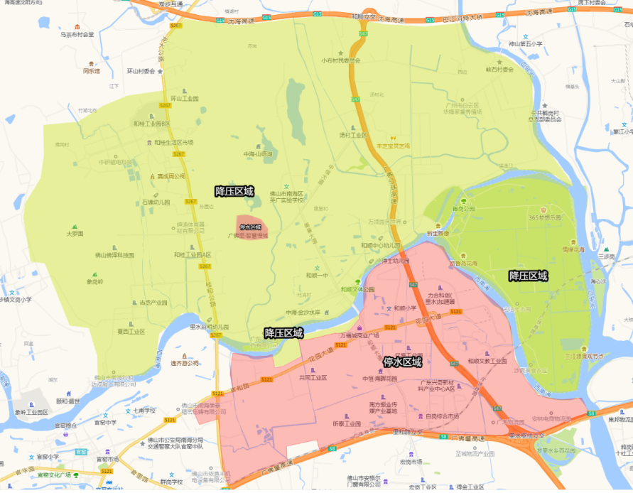 瑶头村委、石塘村委、逢涌村委、和桂工业园一、二期、建星村委、金利村委、汤村村委、小布村委、鲁岗村委、贤僚村委、金溪城区一带用户;中信山语湖、中信金山湾、维港水岸、当代上品湾等楼盘直供水用户,地势较高区域水压会有较大降幅,高楼层直供水用户、楼顶水池用户用水高峰时段可能会出现断水现象。