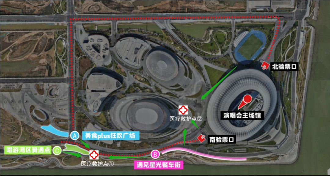 演出日期间,每天13:20、14:00、14:50、15:35、16:20,广州MaydayLand南沙环宇城将安排往返大湾区文化体育中心的接驳车(免费/付费),其中免费额度先到先得、发完即止。