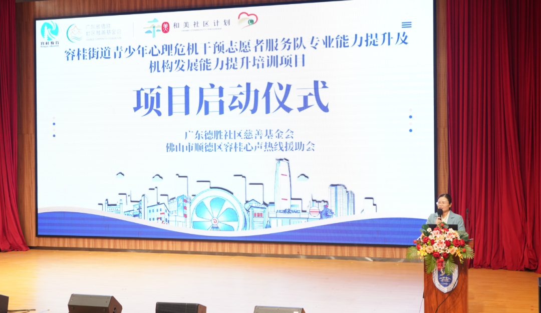 活动现场,正式启动了德胜社区慈善基金会支持的“容桂街道青少年心理支持志愿者服务队专业能力提升项目”。项目负责人容桂心声热线援助会会长陈群桃女士介绍了项目规划。该项目旨在通过系统化、专业化的赋能培训,为街道青少年心理健康服务体系注入持续、稳定的专业力量,夯实学生积极成长的基础。