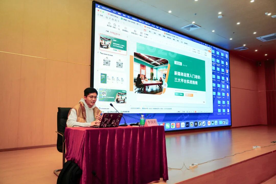 启动仪式后,新媒体技能专题培训随即展开,这也是双方新媒体培训战略合作落地的首个实操环节。活动特邀三水融媒资深自媒体达人李国珩授课,在平台基础运营环节,课程聚焦小红书、微信视频号、抖音三大主流媒体,从账号搭建、稿件发布全流程手把手教学。李国珩结合爆款案例,帮助学员精准把握不同平台的运营逻辑与流量规则。