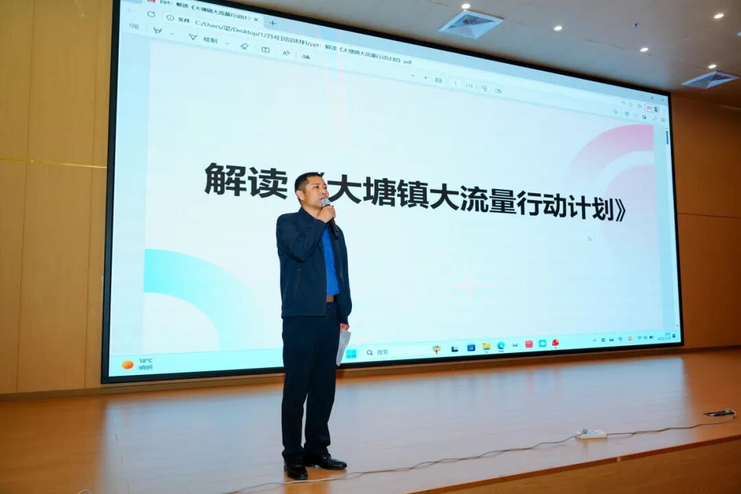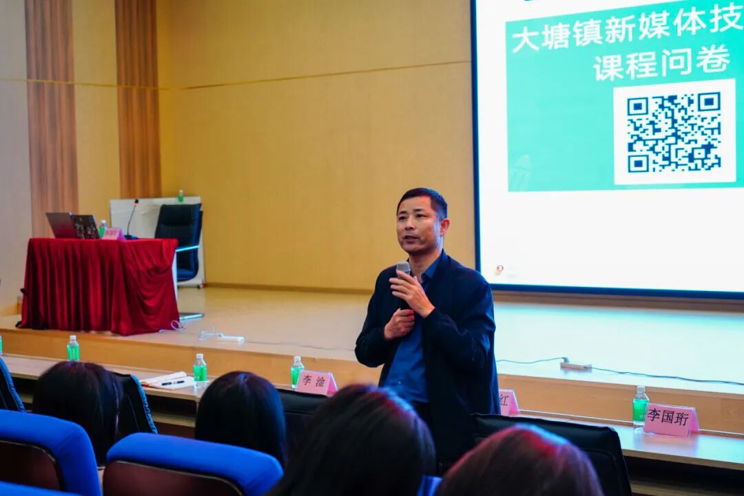 启动仪式上,大塘镇党委委员、宣传委员佘高红与佛山三水融媒有限公司总经理李淦共同启动合作项目,标志着双方以新媒体培训为纽带的战略合作正式进入实质推进阶段,为大塘数字传播注入专业力量。随后,佛山三水融媒有限公司总经理李淦分享了从本土新闻深度报道到文旅资源特色推广的系列实践,同时明确未来战略合作方向,将结合大塘产业特色与文化亮点,依托佛山三水融媒资源与专业师资优势,构建“政媒联动、精准施教、学以致用”的自媒体技能培训体系,提供全流程技术指导。