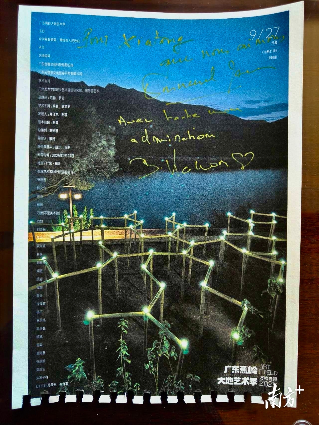 法国总统马克龙及其夫人在蕉岭大地艺术季海报上留下亲笔签名。