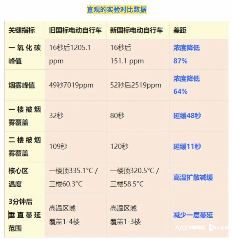 燃烧实验对比:新国标“小电驴”毒气少87%,逃生多48秒