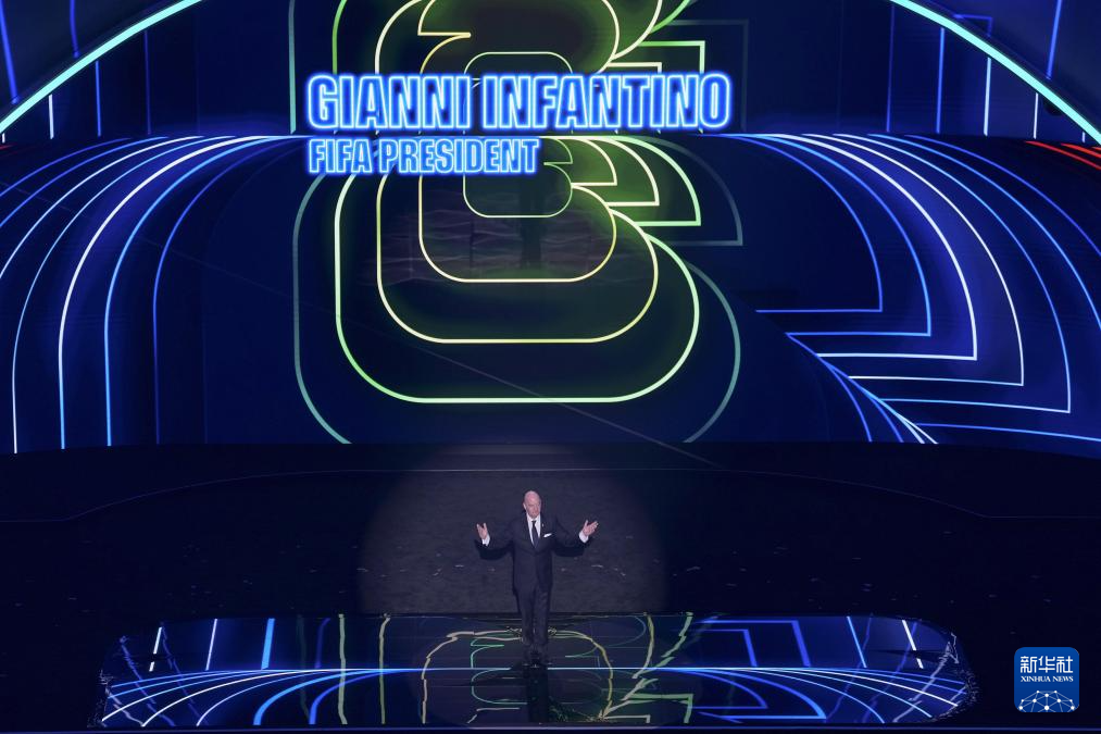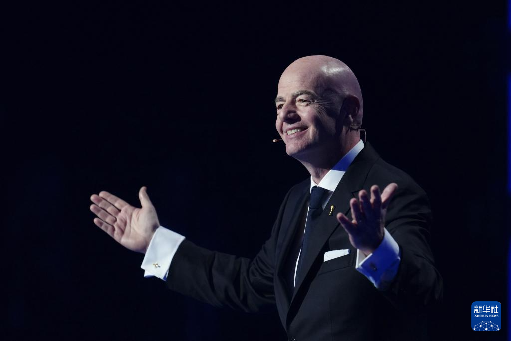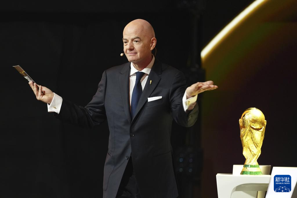 12月5日,国际足联主席因凡蒂诺在抽签仪式现场致辞。