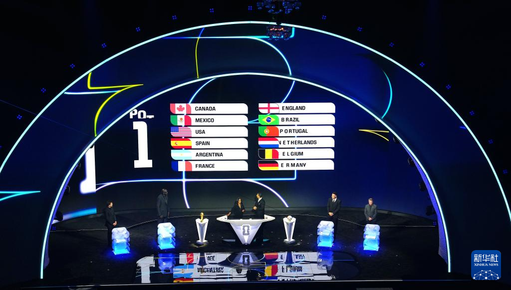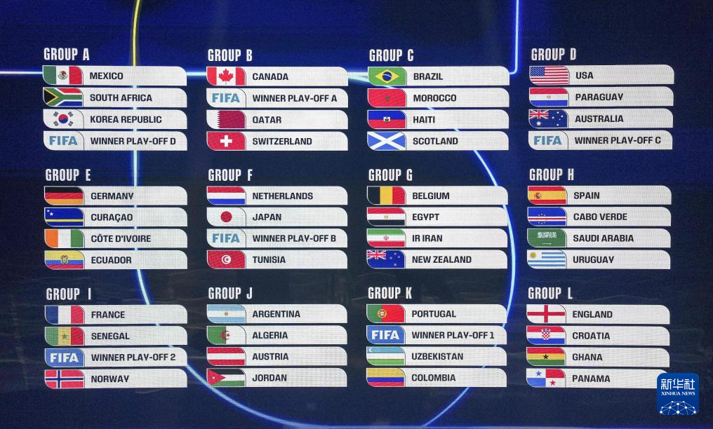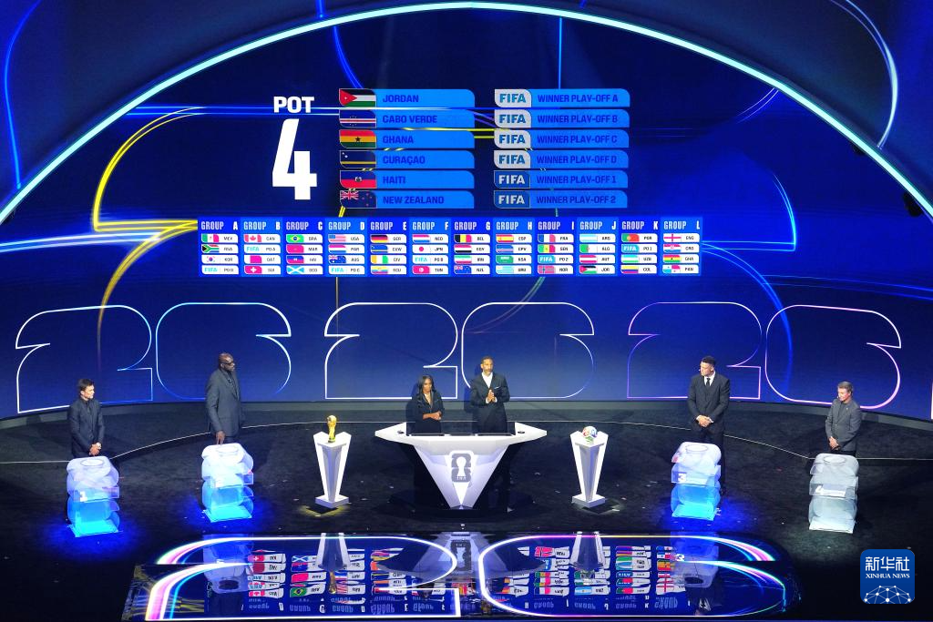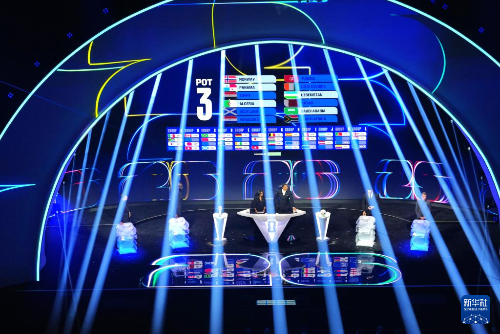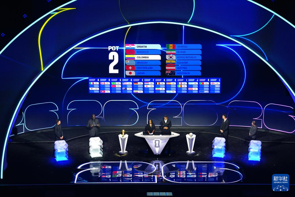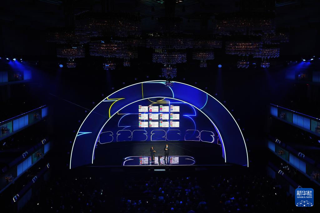 这是12月5日拍摄的抽签仪式现场大屏幕显示的抽签结果。