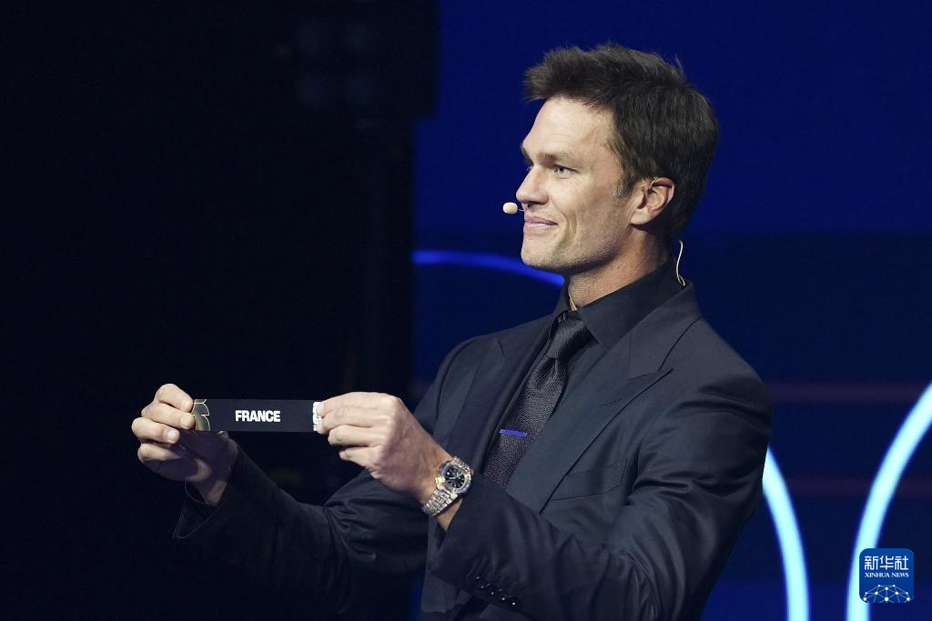 12月5日,抽签嘉宾汤姆·布拉迪展示写有法国队的签条。