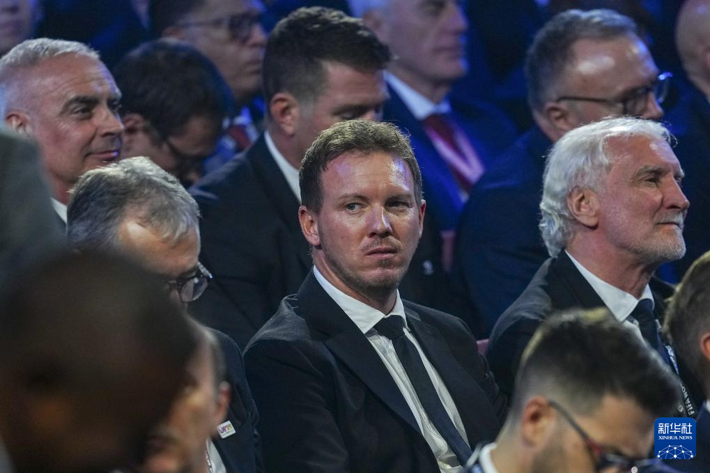 12月5日,德国队主教练纳格尔斯曼(中)在抽签仪式现场。