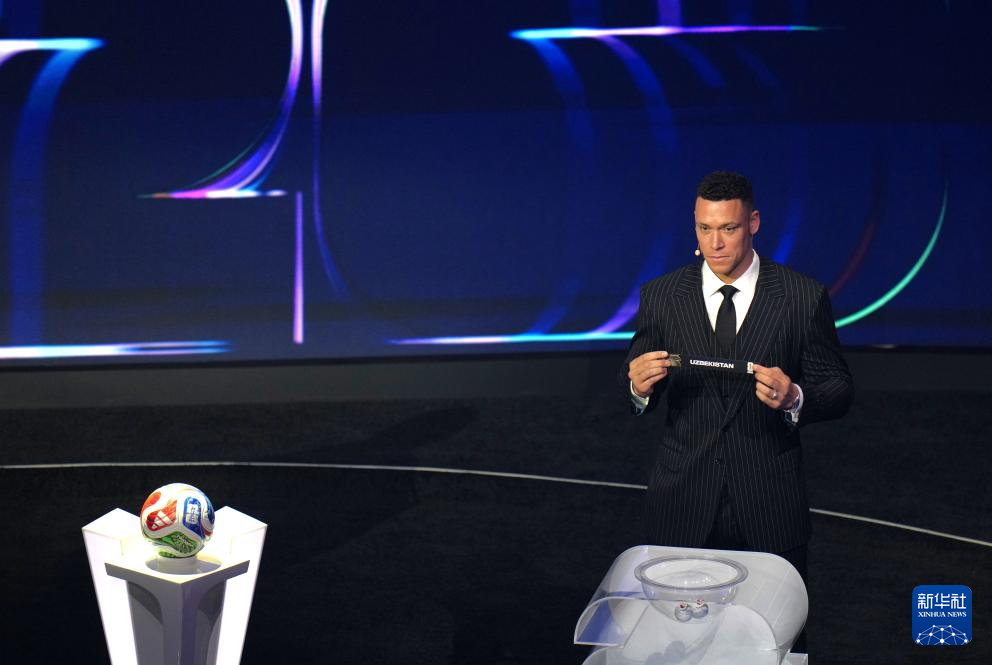 12月5日,抽签嘉宾阿伦·贾奇展示写有乌兹别克斯坦队的签条。