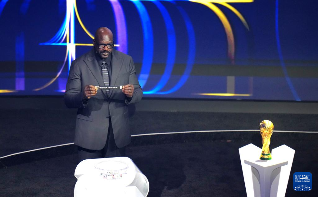 12月5日,抽签嘉宾奥尼尔展示写有韩国队的签条。
