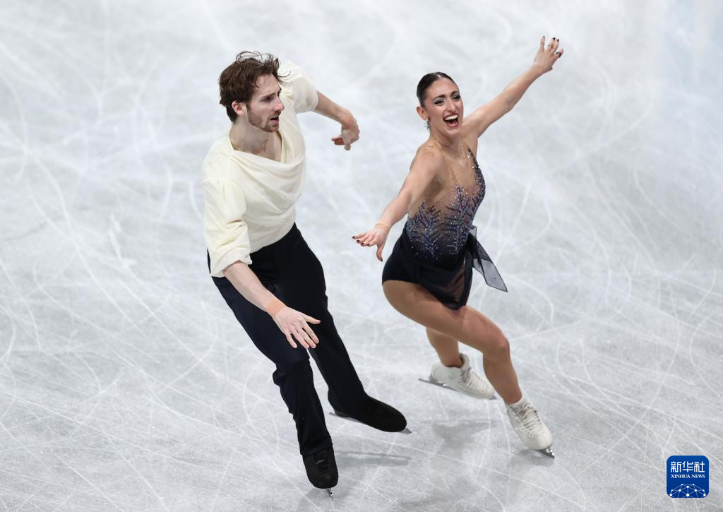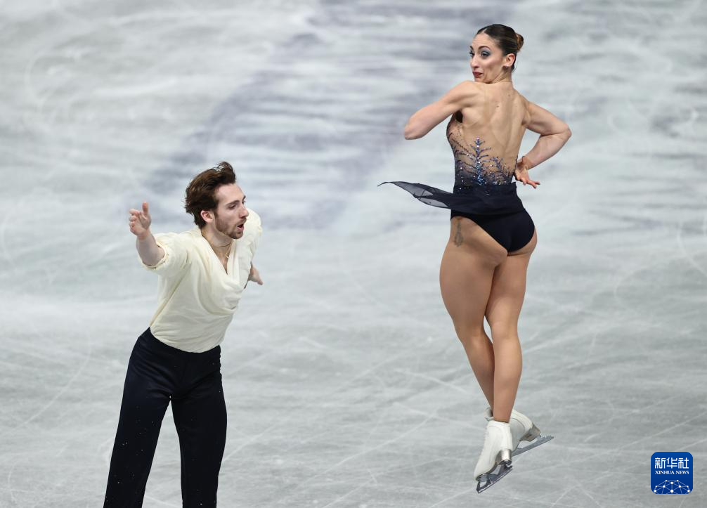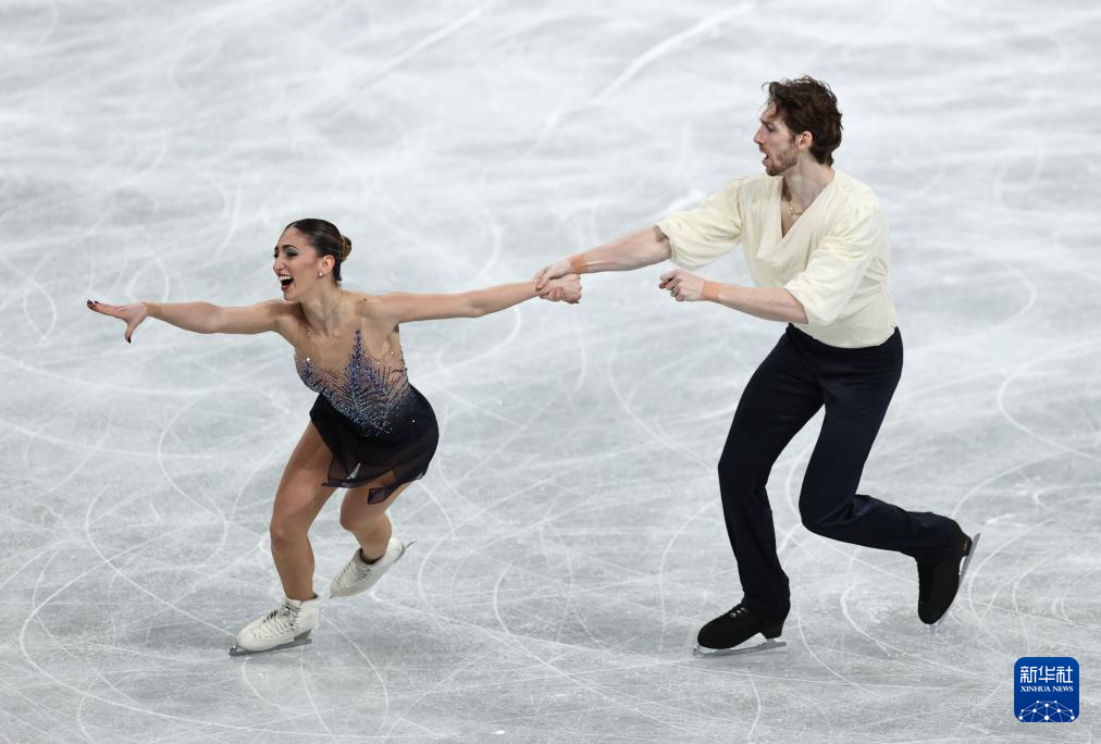 12月5日,意大利组合孔蒂(左)/马西在双人滑自由滑比赛中。最终,他们以223.28分的成绩获得双人滑银牌。