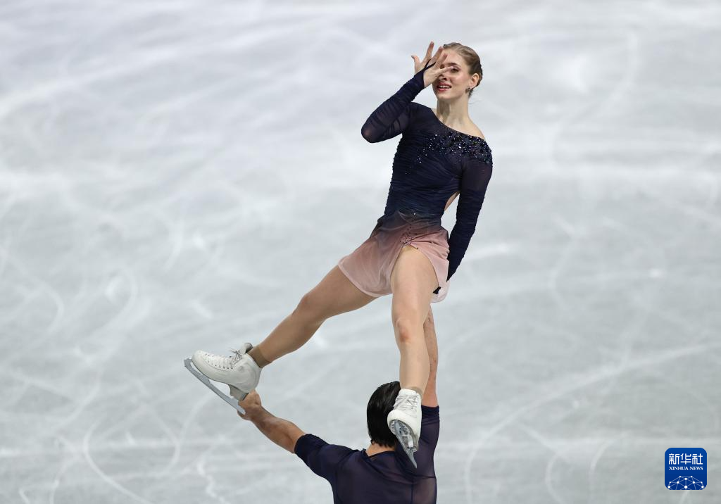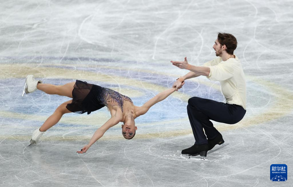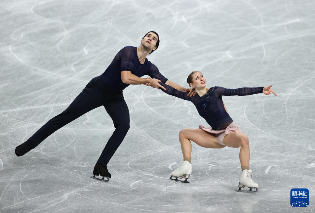 12月5日,德国组合哈泽(右)/沃洛丁在双人滑自由滑比赛中。最终,他们以221.25分的成绩获得双人滑铜牌。