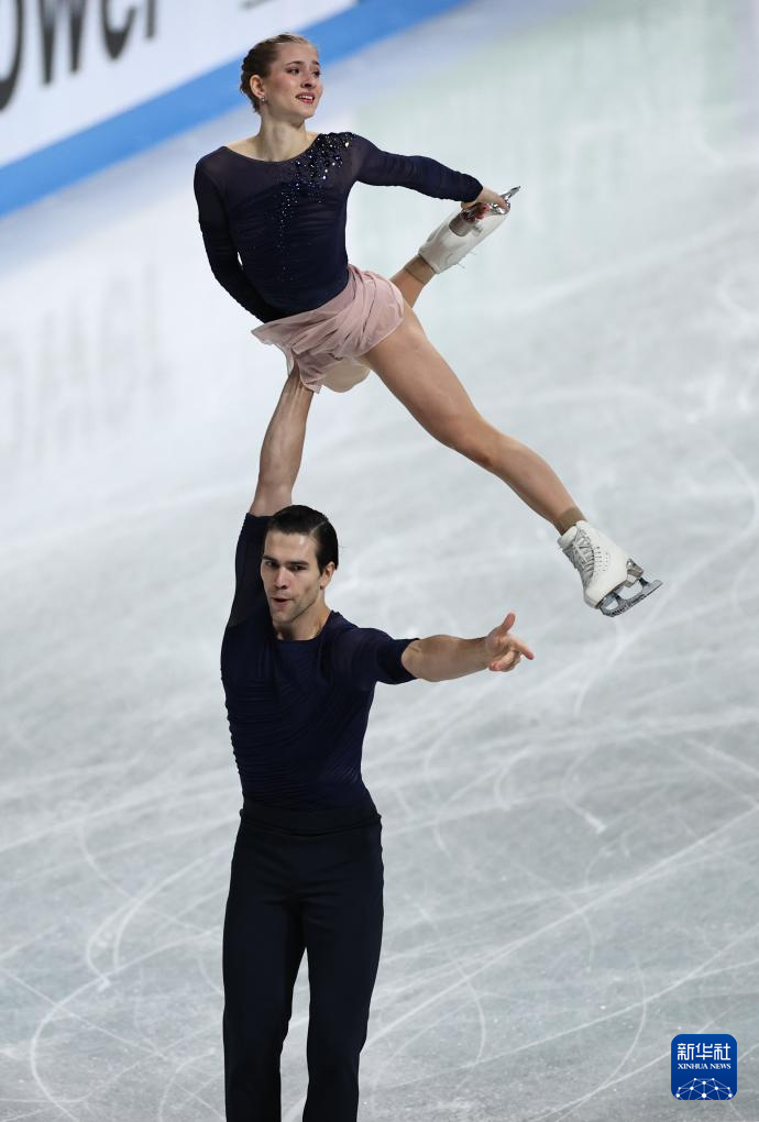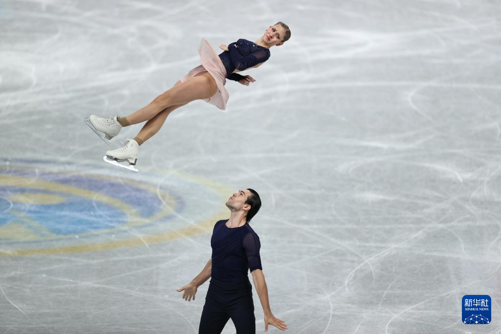 12月5日,德国组合哈泽(上)/沃洛丁在双人滑自由滑比赛中。最终,他们以221.25分的成绩获得双人滑铜牌。
