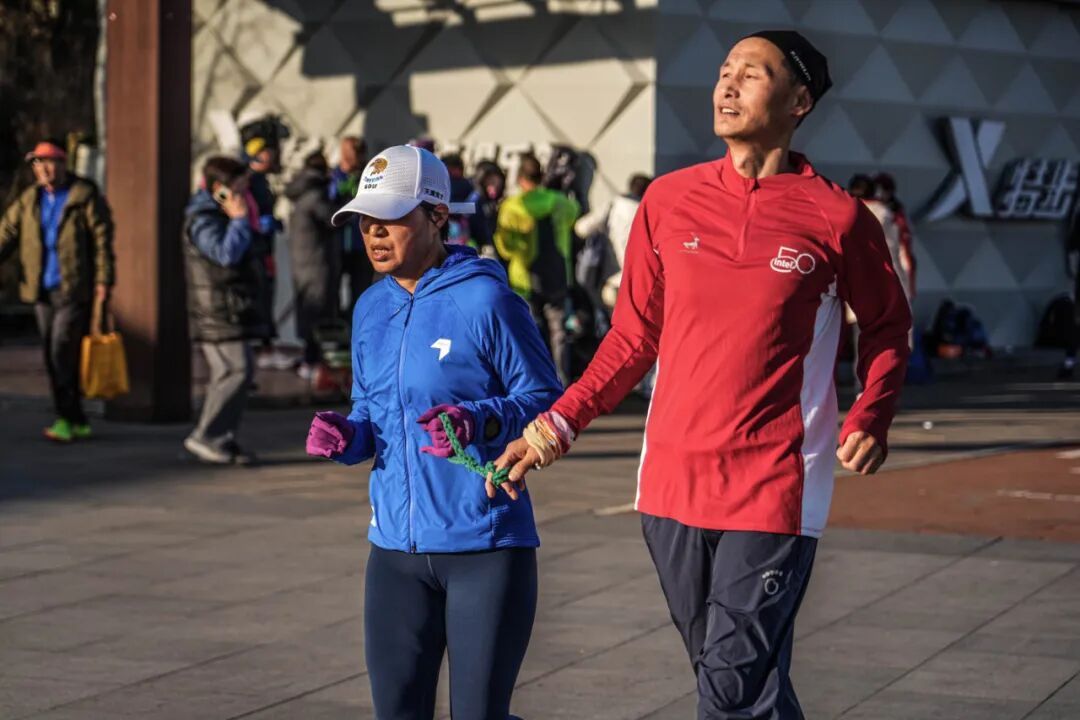 这之后,宋海峰加入了助盲团,每周三和周六早上在奥森公园陪盲友跑步。直到一年后的北马,这个陕西汉子终于牵起了那条绳子。
