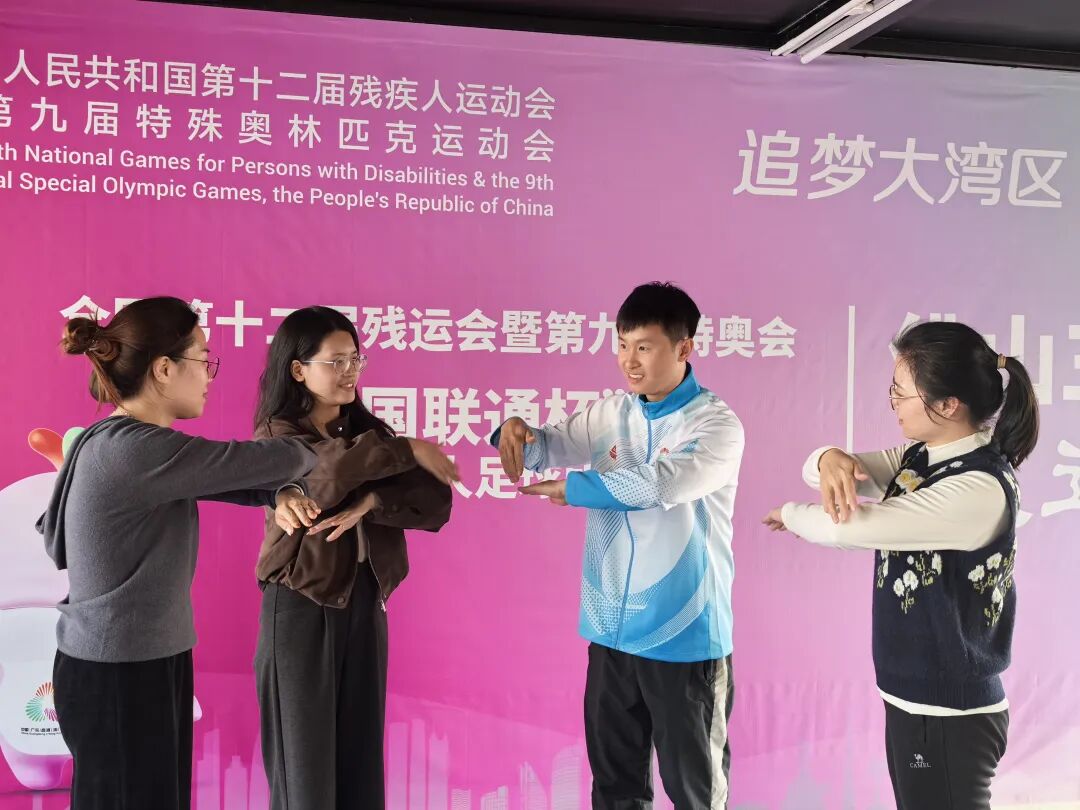 全国残特奥会五人制聋人足球竞委会竞赛处副处长郑爱仪介绍,为跨越沟通障碍,三水区配备了10名手语老师,24小时驻守场馆与酒店,提供专业手语翻译服务。同时,所有工作人员均接受了基础沟通培训,鼓励通过文字、手机打字等多元方式与运动员交流,确保服务“无障碍”、沟通“零距离”。