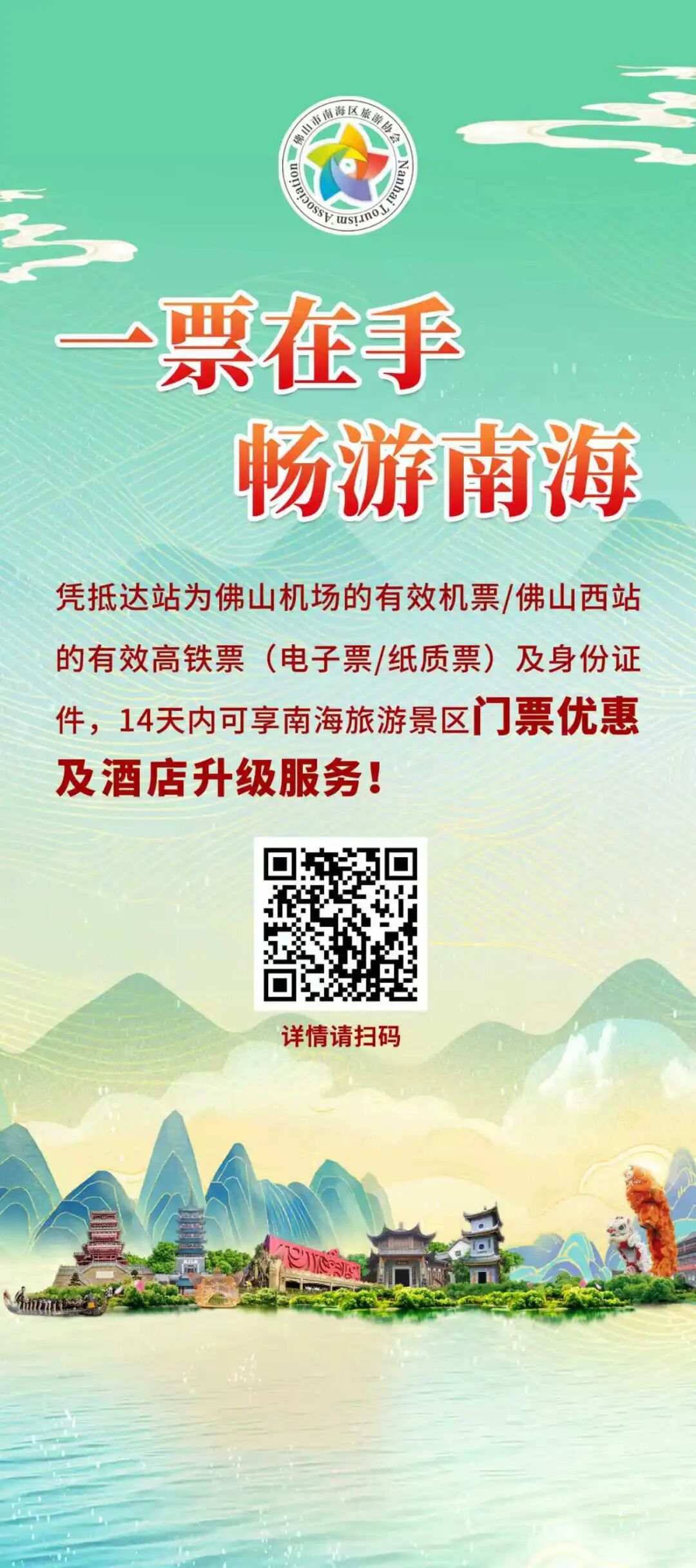 重磅福利! 近期南海文旅放大招 一张机票=景区门票优惠+酒店升级服务 乘飞机或高铁落地狮山 即可省时省钱玩转南海
