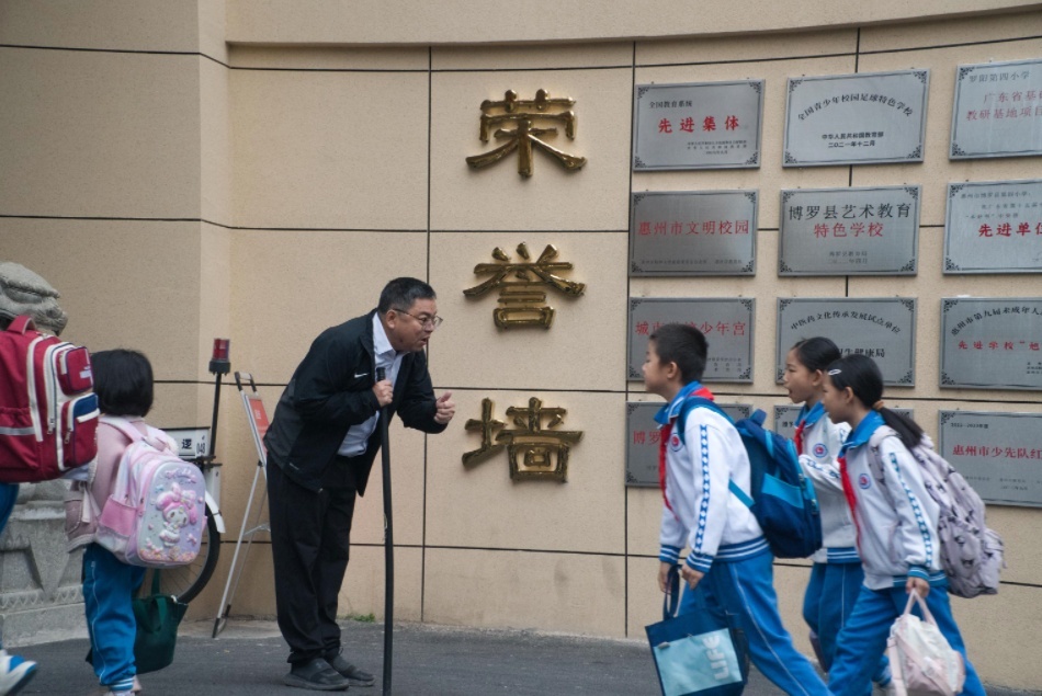“早上好!”“加油!”博罗县第四小学一副校长每日微笑“营业”