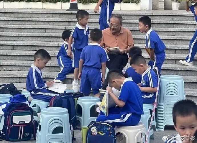 在校门口搬来小板凳