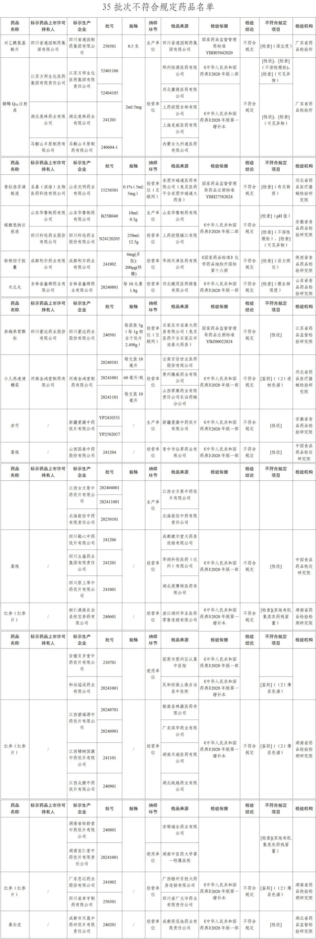 35批次药品不符合规定